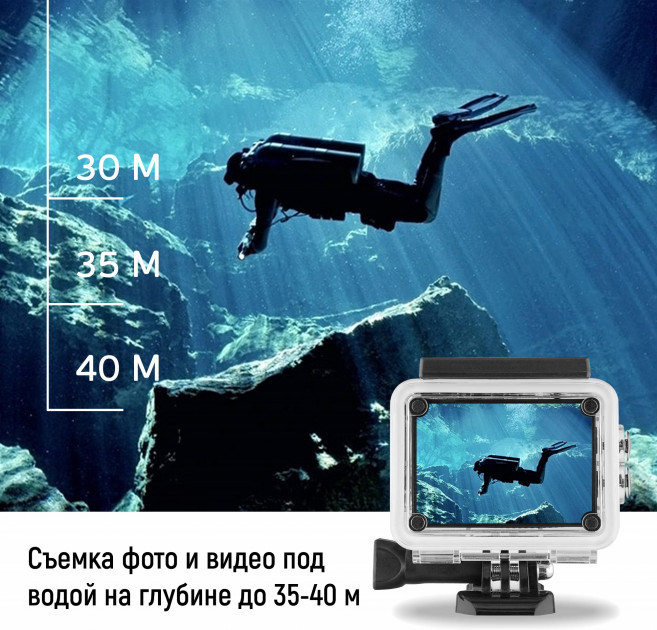 Екшн-камера підтримує зйомку відео з роздільною здатністю 4K (2880x2160) 24 FPS, 2К (2.9K) (2560x1440) 30 FPS,1080P (1920×1080) 30 FPS, 720P (1280x720), 120 (Slow Motion)/60/30 FPS, VGA (640x480) 240 FPS (тільки Slow Motion) і фото з роздільною здатністю до 24MP. Такі показники дозволяють передавати оригінальну яскравість і насиченість, різкість предметів і плавне пересування об'єктів без змазування картинки.