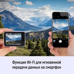 Компактна камера AIRON ProCam 7 має функцію Wi-Fi. За її допомоги можна підключати девайс до телефона і відразу обробляти відео та фото, зберігати їх в галереї або відразу постити в мережі.