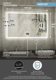 Зеркало Континент Mercury Led 120x80 (с музыкой, подогревом, увеличительным зеркалом)
