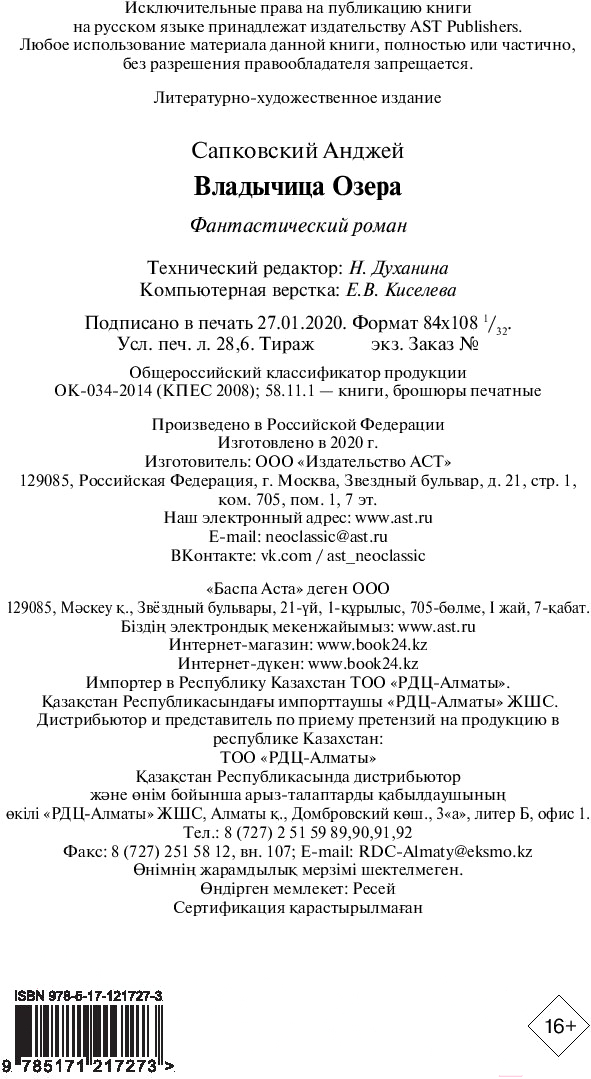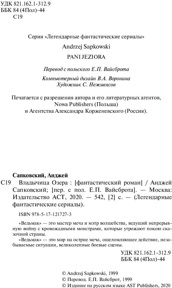 Книга АСТ Ведьмак. Владычица озера (Сапковский А.)