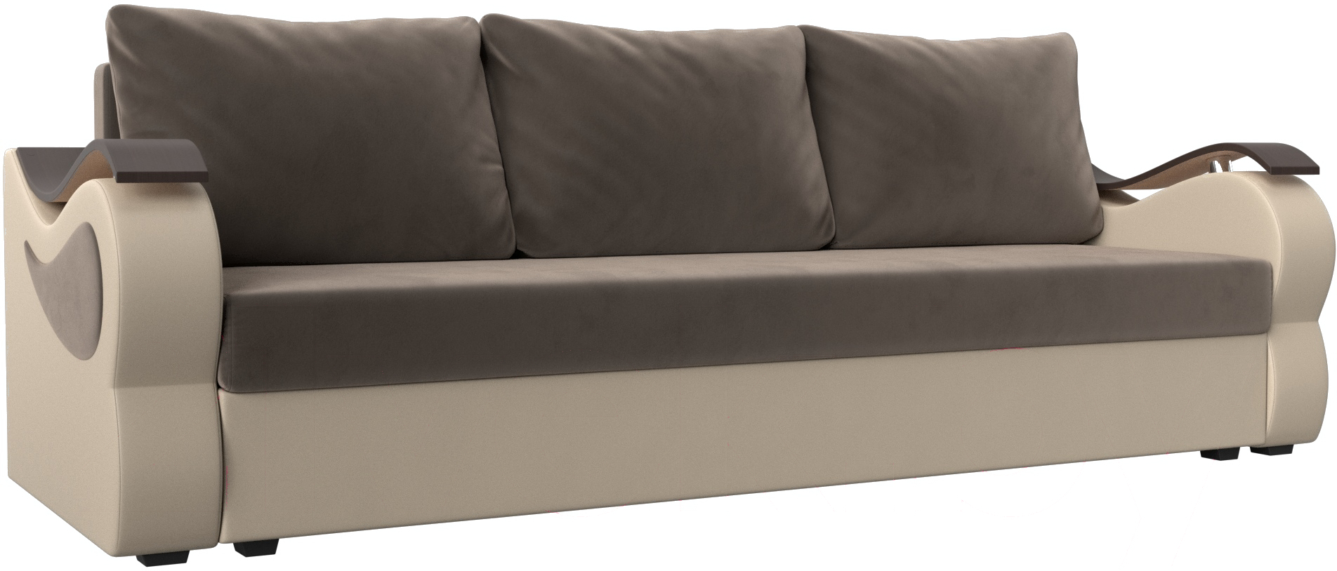 Диван Лига Диванов Меркурий лайт (велюр коричневый/экокожа бежевый)