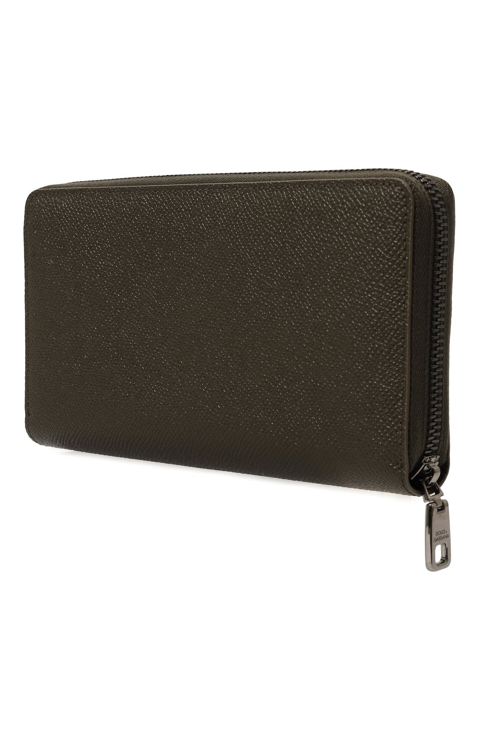 Портмоне из кожи с тиснением Dauphine украсили многослойной брендированной пластиной. Аксессуар, застегивающийся круговой молнией, дополнили 12 слотами, тремя отделениями для чеков и купюр и карманом для монет.