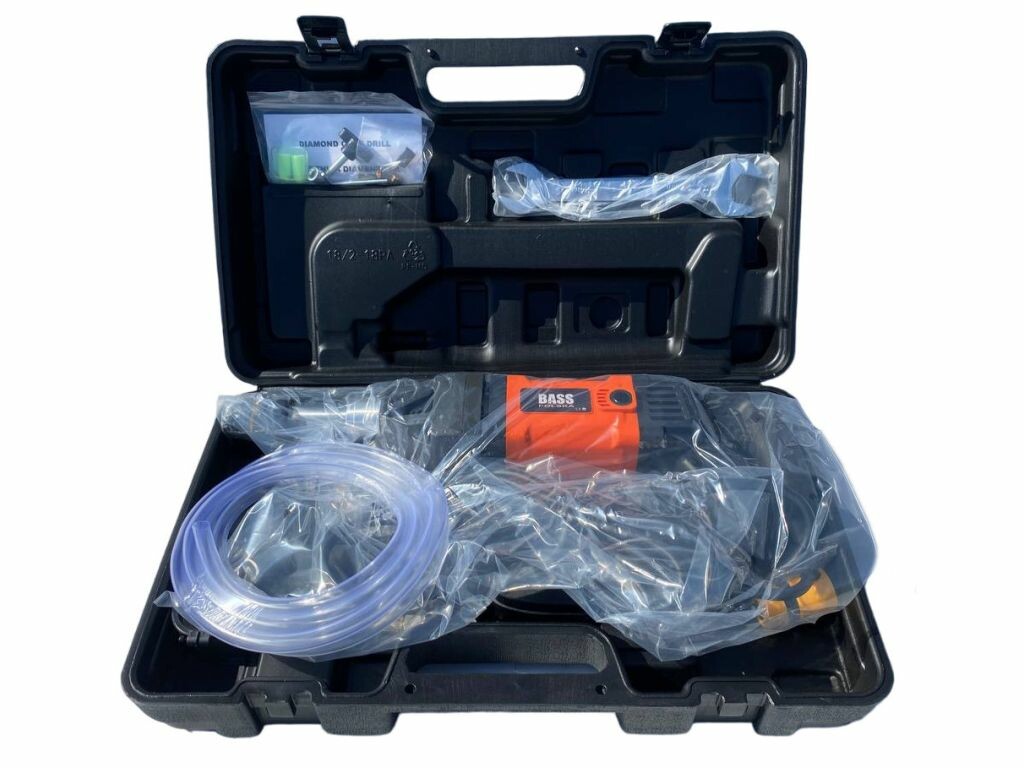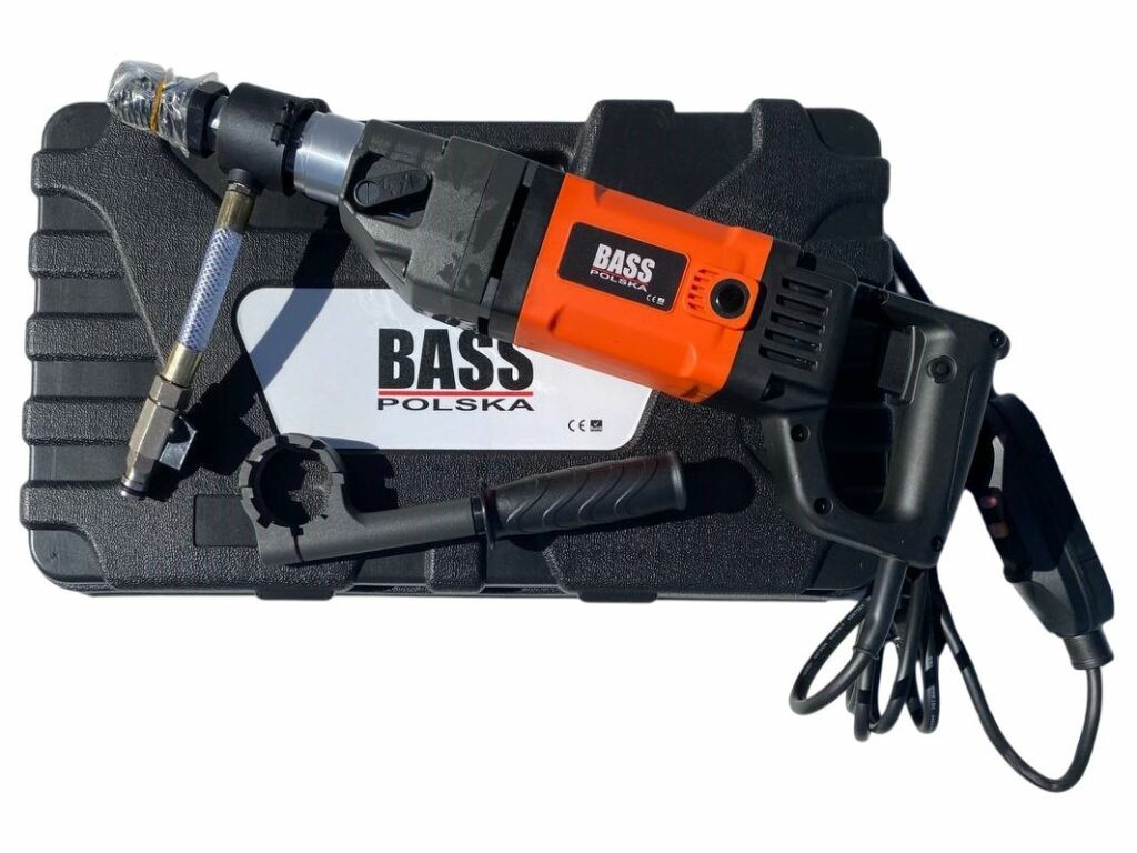 Bass Polska BP-7752 - универсальная установка для алмазного сверления с функцией микроудара, предназначенная для создания отверстий в бетоне, железобетоне, кирпиче и других твердых материалах. Этот инструмент может использоваться для мокрого и сухого сверления, что делает его подходящим для различных условий работы.