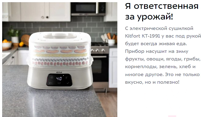 Сушилка для овощей и фруктов Kitfort KT-1991