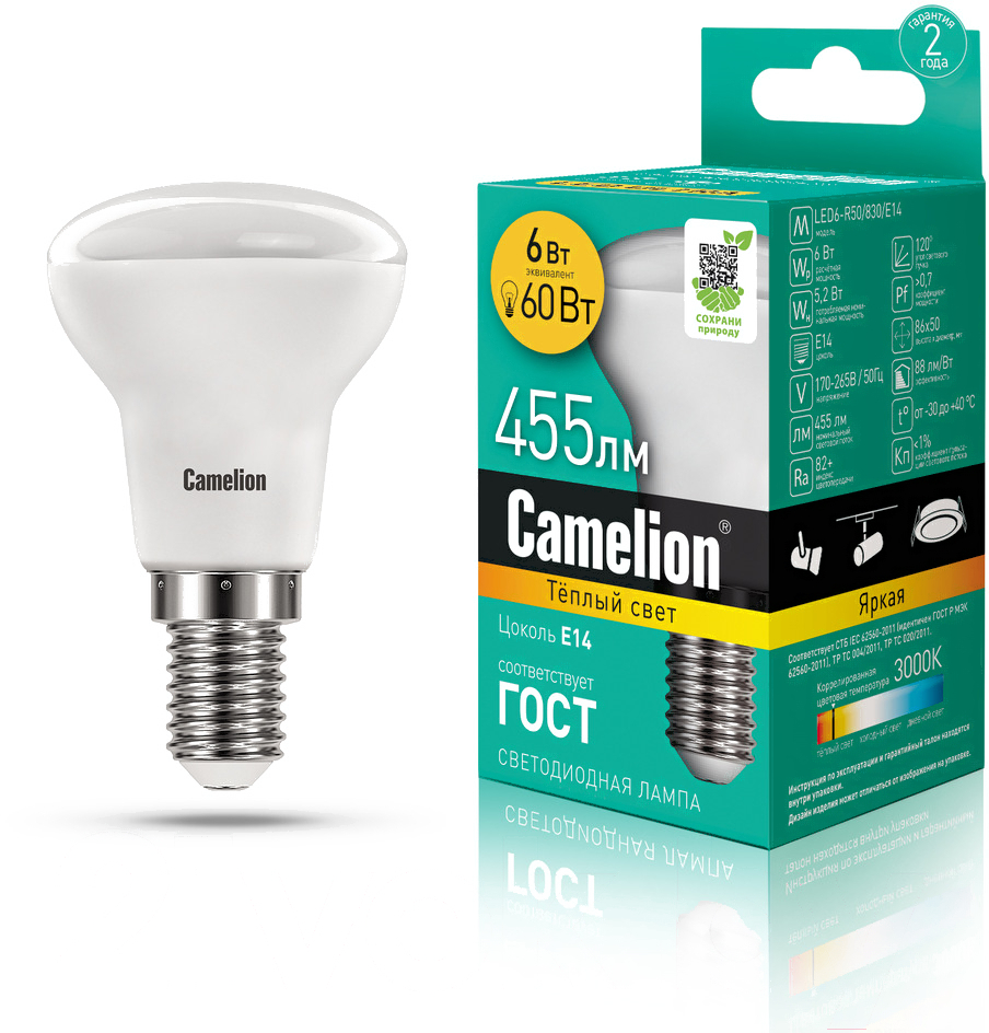 - Эквивалентная мощность лампы накаливания 60 Вт