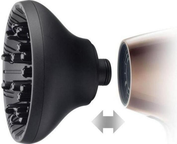 В залежності від ваших уподобань, три стайлінг-насадки з обертанням на 360° під час використання, дозволяють концентрувати повітряний потік або створювати дифузію для отримання приголомшливих завитків і укладання локонів.
