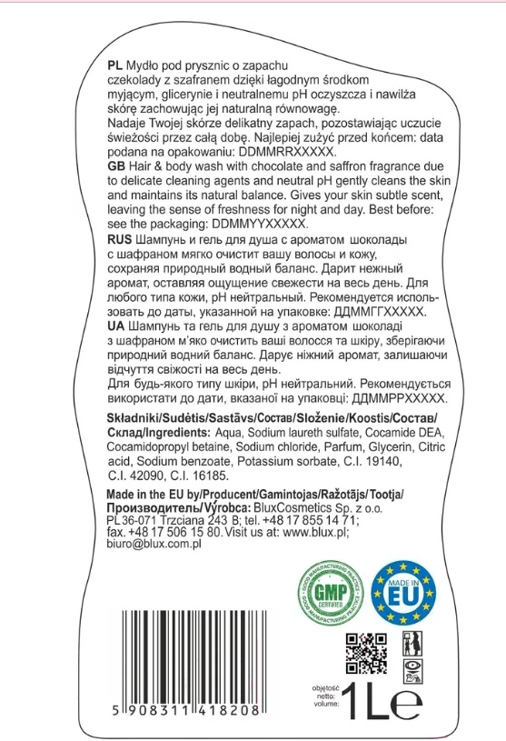 Гель для душа Naturaphy Шоколад и шафран с дозатором (1л)