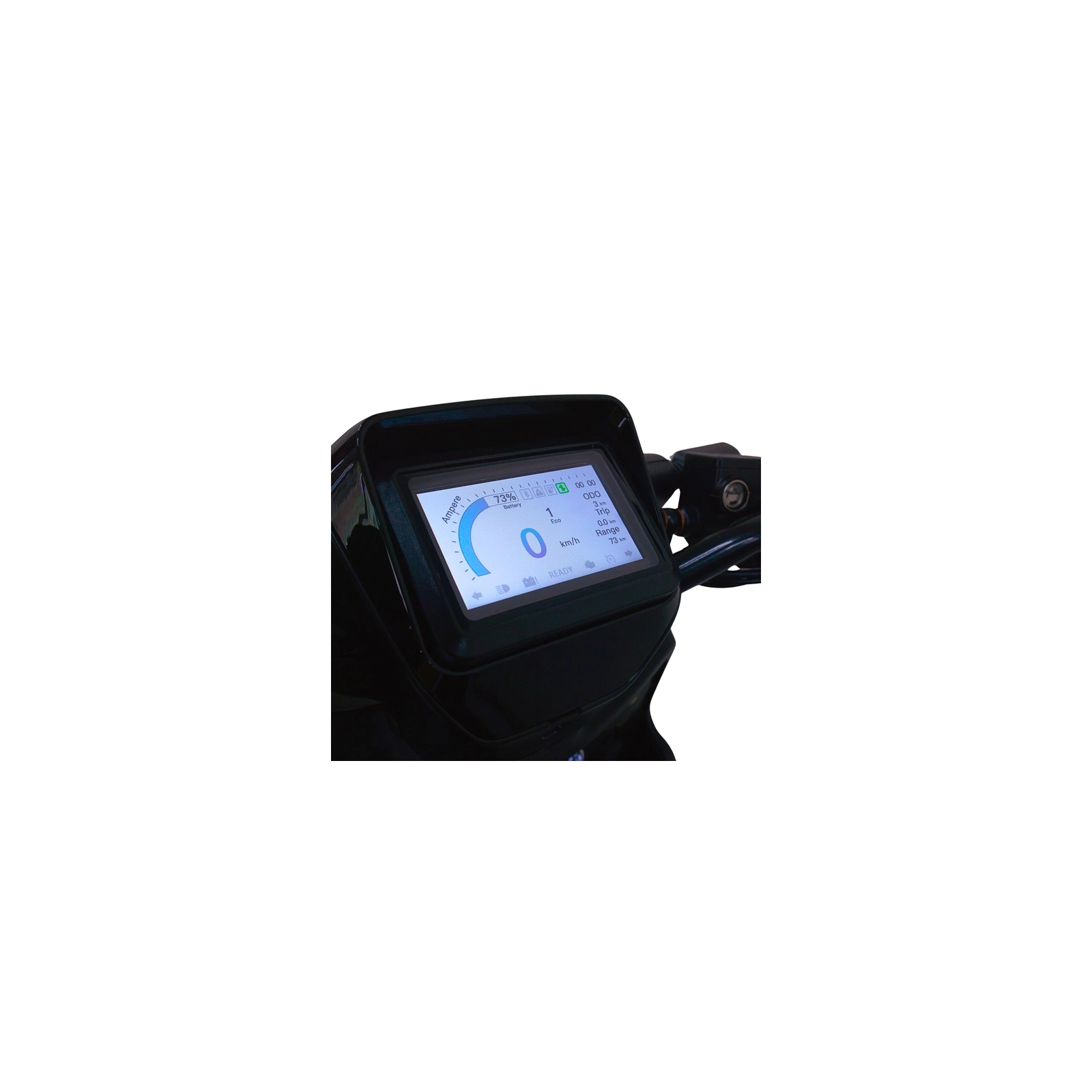 Вбудований TFT-екран скутера SARKCYBER HC200 CBS легко читається навіть при яскравому денному світлі та пропонує безліч корисних функцій. На екрані відображається поточна швидкість, рівень заряду акумулятора, пройдена відстань, одометр, розрахунковий залишковий запас ходу в кілометрах, час і обраний режим їзди. Це допомагає вам контролювати всі необхідні дані та насолоджуватися комфортною і безпечною поїздкою.