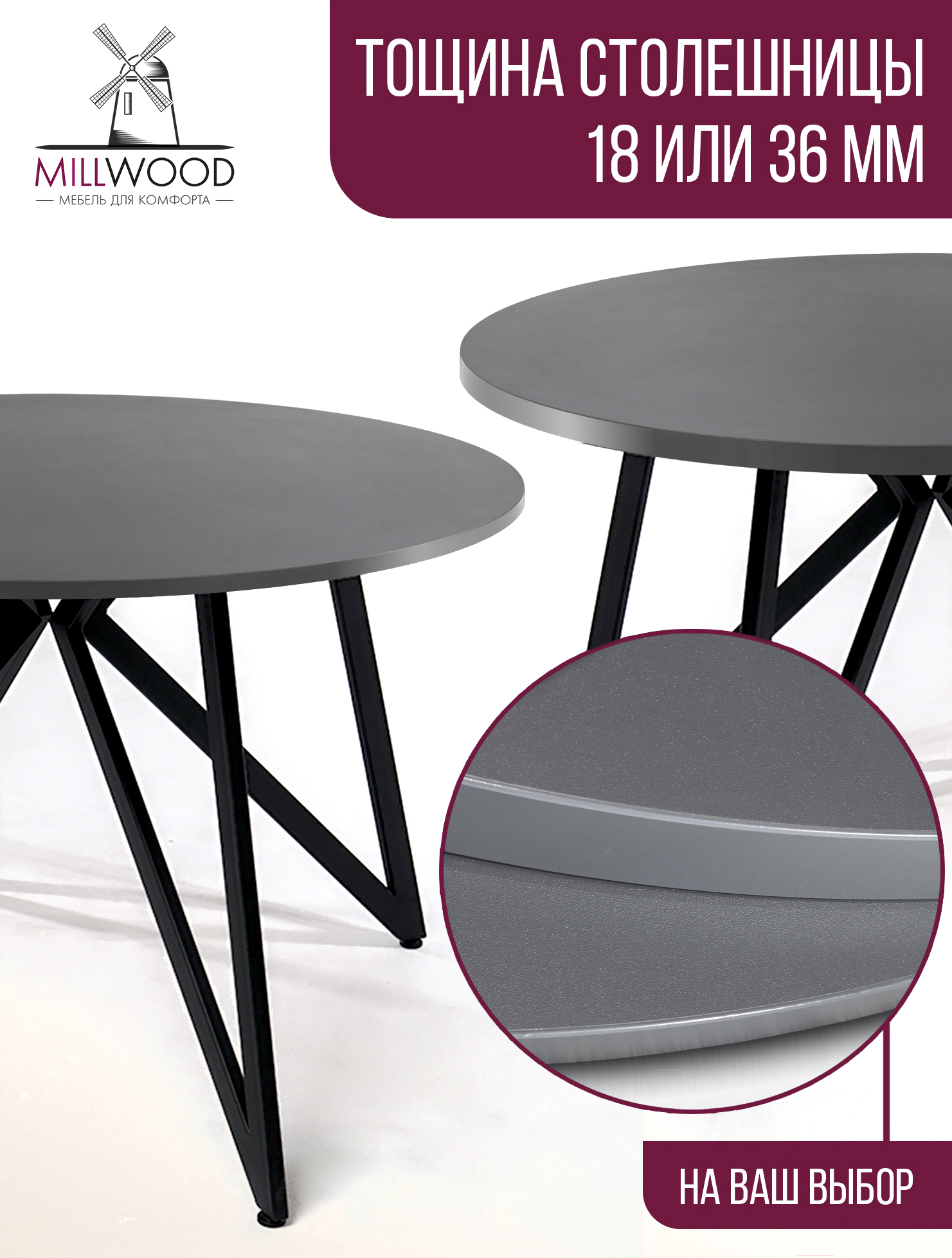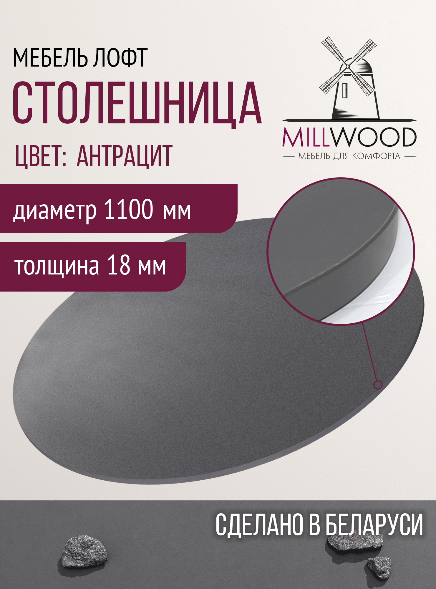Столешница для стола Millwood D110x18 (антрацит)
