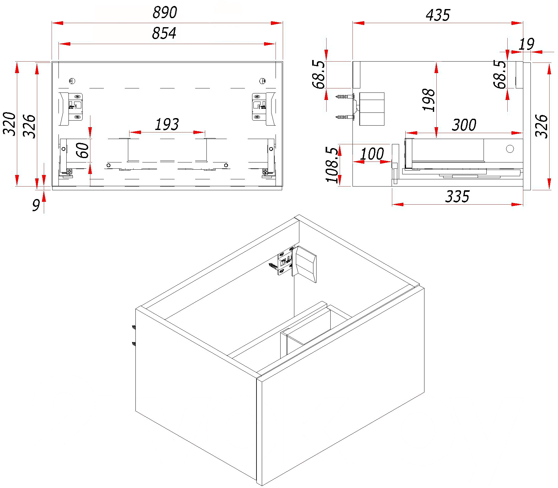 • Высота тумбы под умывальник 32.9 см