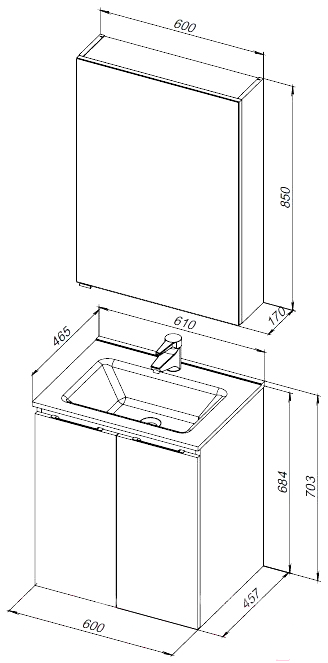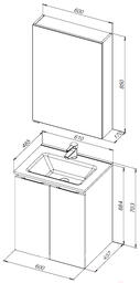 • Элементы набора шкафчик с зеркалом, тумба под умывальник, умывальник
