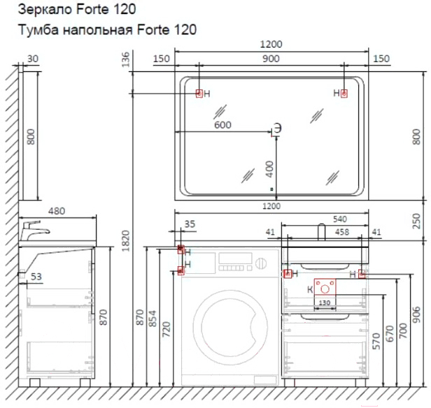 • Элементы набора тумба под умывальник (1 шт.), умывальник (1 шт.)