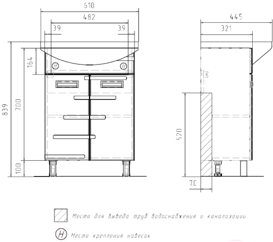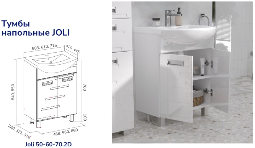 Тумба под умывальник Volna Joli 60.2D Балтика