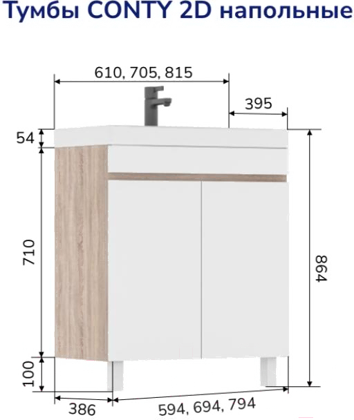 Тумба под умывальник Volna Conty 70.2D (напольная)