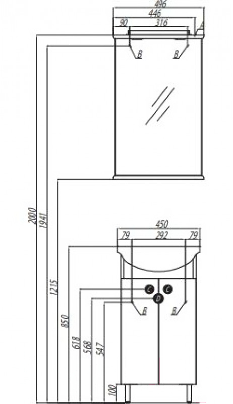 Тумба с умывальником Акватон Мира 45 Н (1A1044K1MR010)