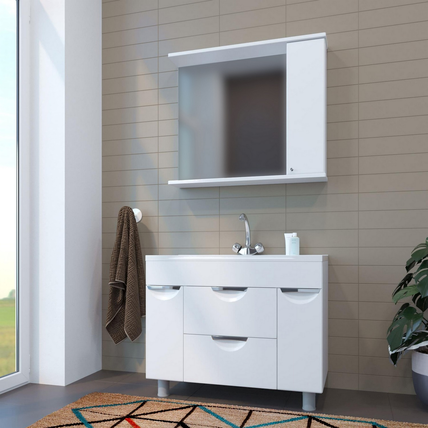 - Ширина тумбы под умывальник 89 см