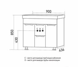 - Глубина тумбы под умывальник 43.6 см