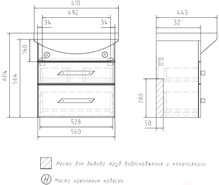 • Умывальник в комплекте нет
