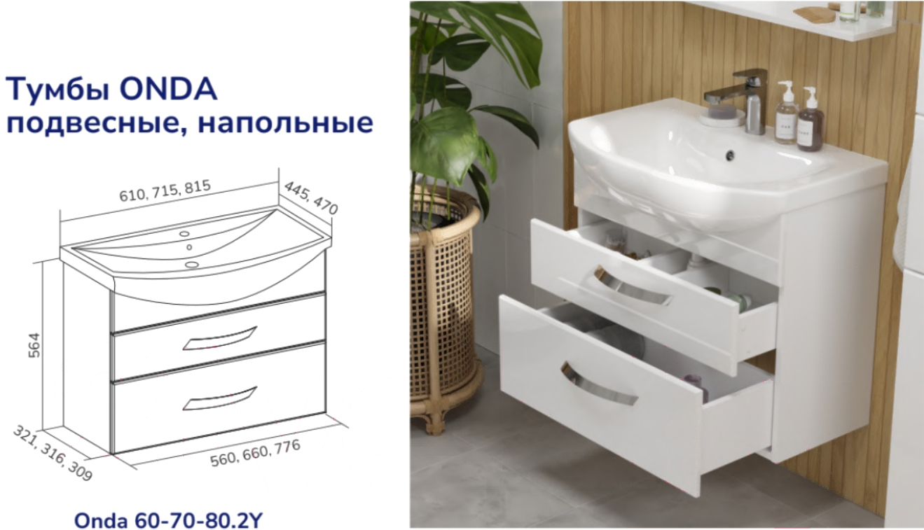Тумба под умывальник Volna Onda 80.2Y Балтика (подвесная)