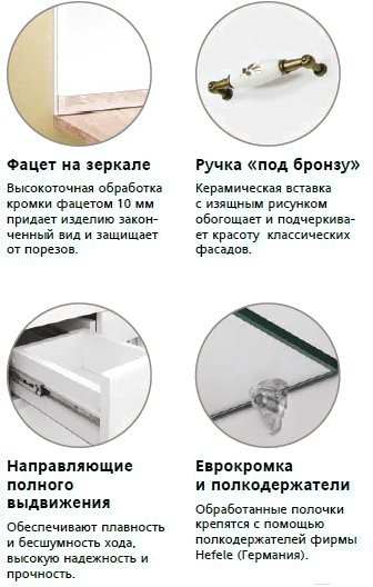 • Цвет фурнитуры белый, бронза