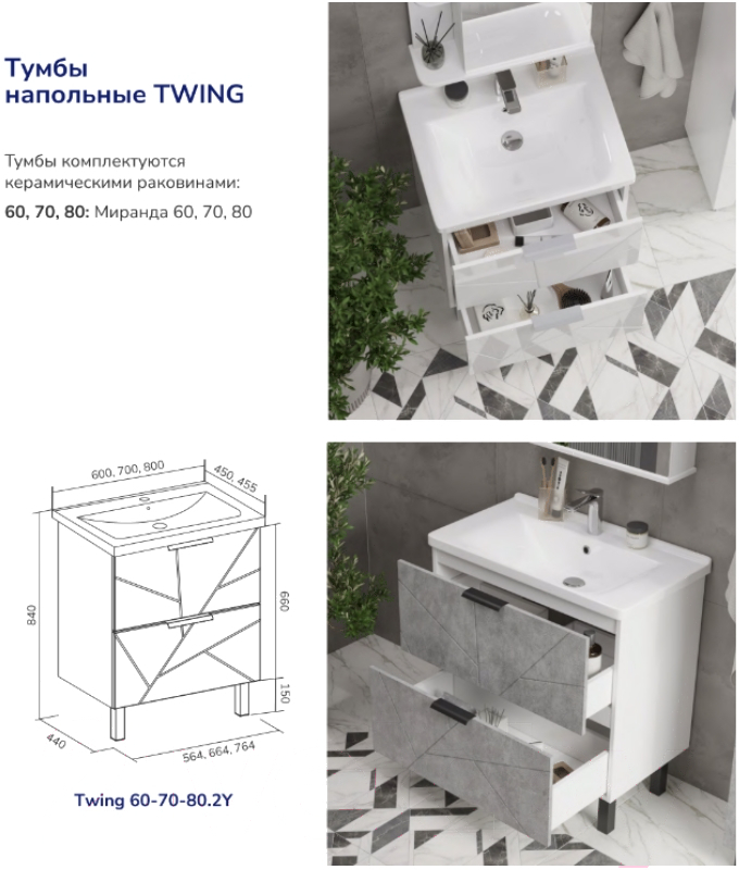 Тумба под умывальник Volna Twing 70.2Y Миранда (белый)