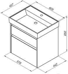 • Ширина тумбы под умывальник 57.6 см