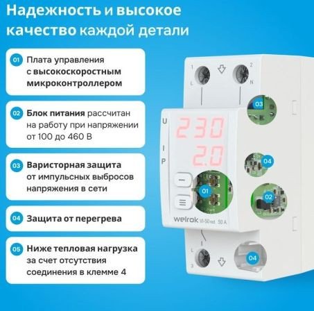 • Номинальный ток нагрузки 50 А