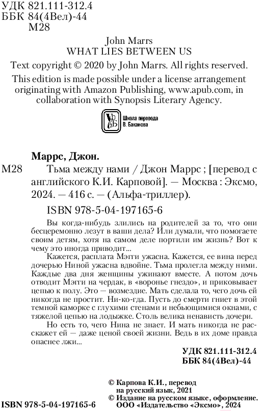 Книга Эксмо Тьма между нами / 9785041971656 (Маррс Дж.)