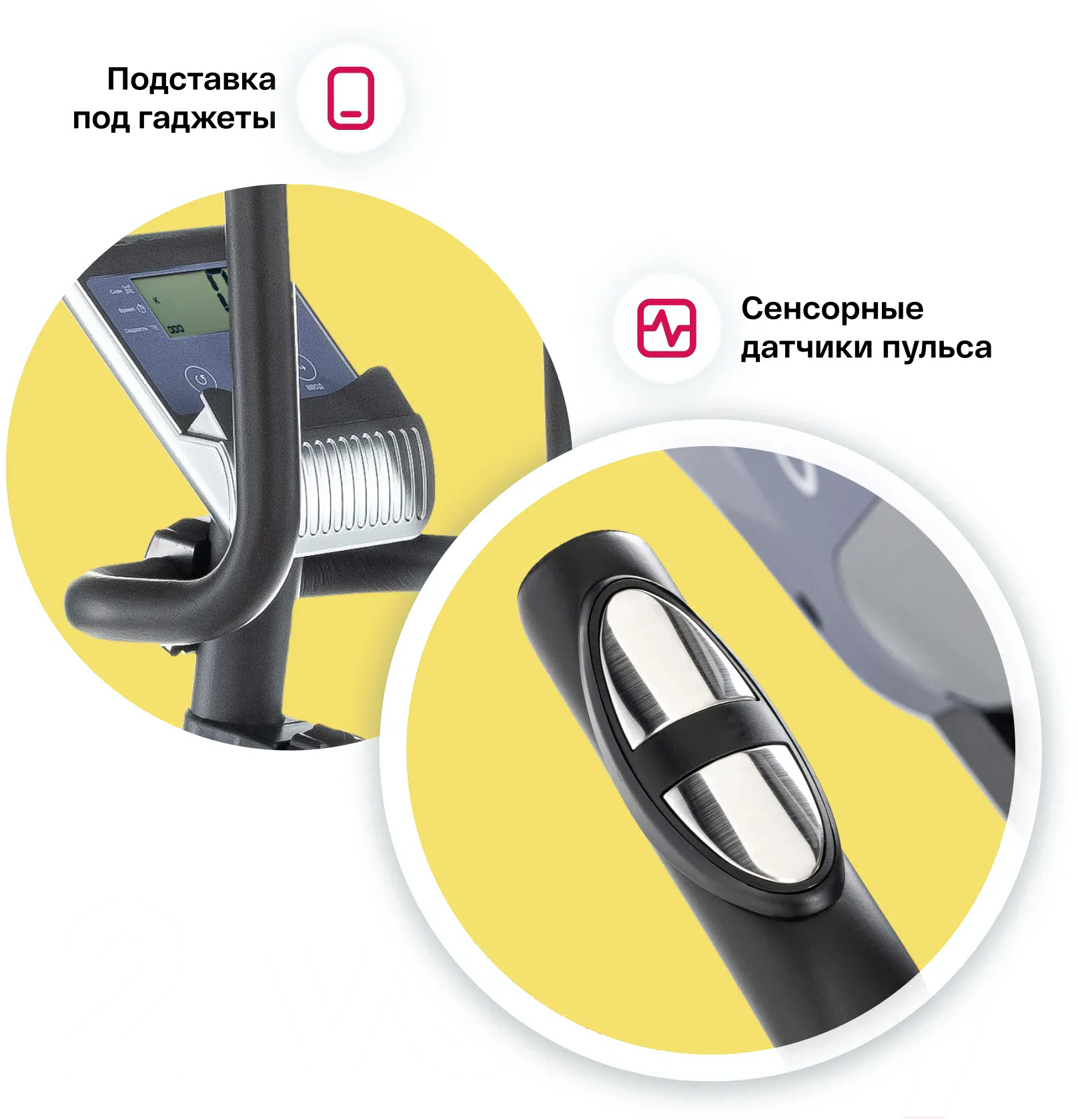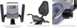 • Индикация пульс, прошедшее время, пройденное расстояние, сожжено калорий, текущая скорость, сканирующий режим, одометр