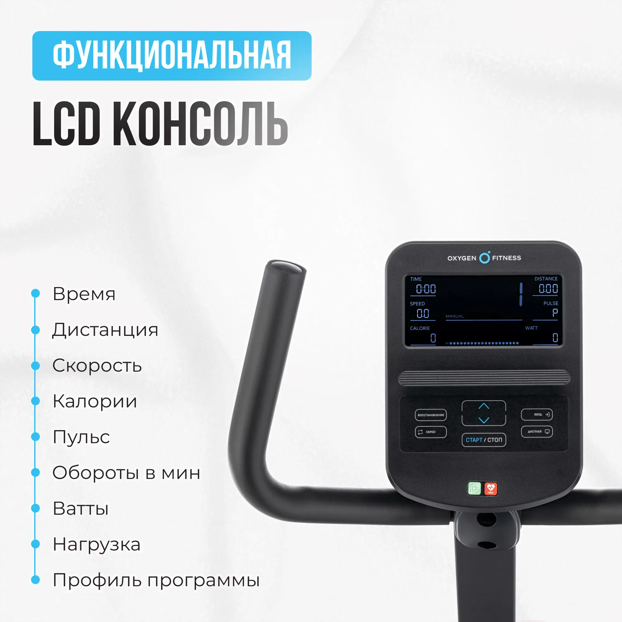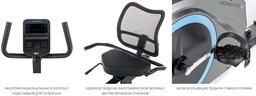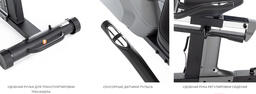 • Индикация пульс, прошедшее время, пройденное расстояние, сожжено калорий, текущая скорость, уровень нагрузки, текущая программа, ватты, число оборотов в минуту