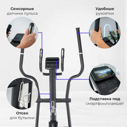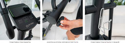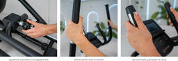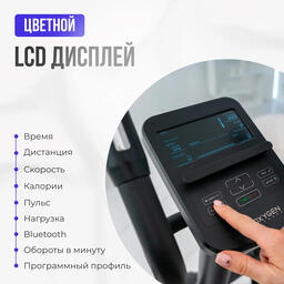• Индикация уровень нагрузки, пульс, пройденное время, пройденное расстояние, расход калорий, текущая скорость, профиль программ, частота вращения (об/мин)