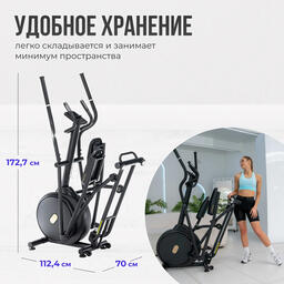 • Портативность колеса, складная конструкция (112.4×70×172.7 см), компенсаторы неровности пола