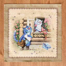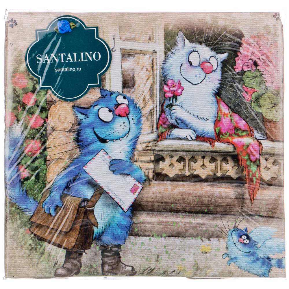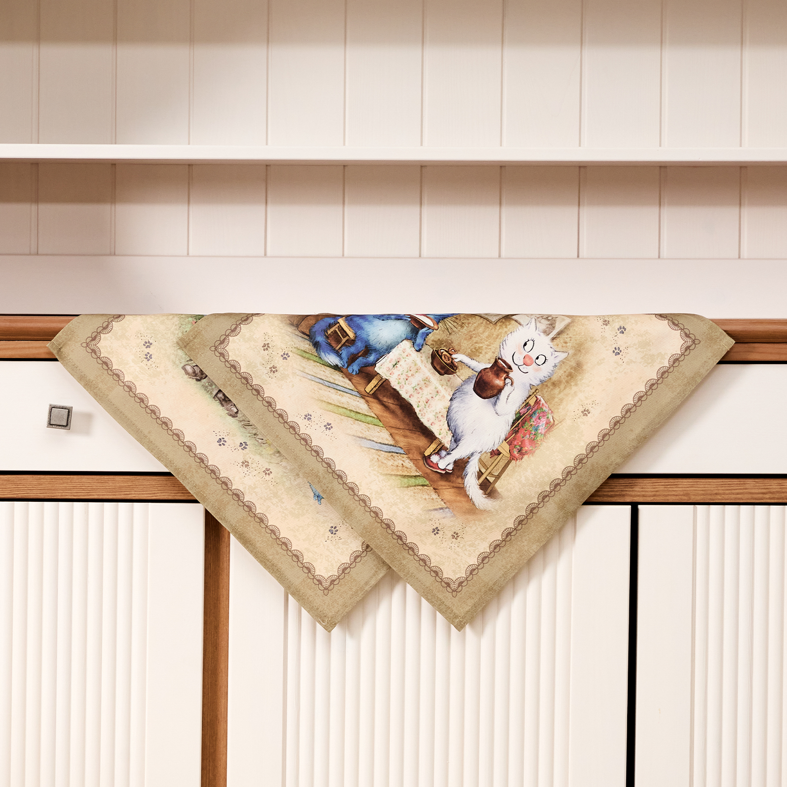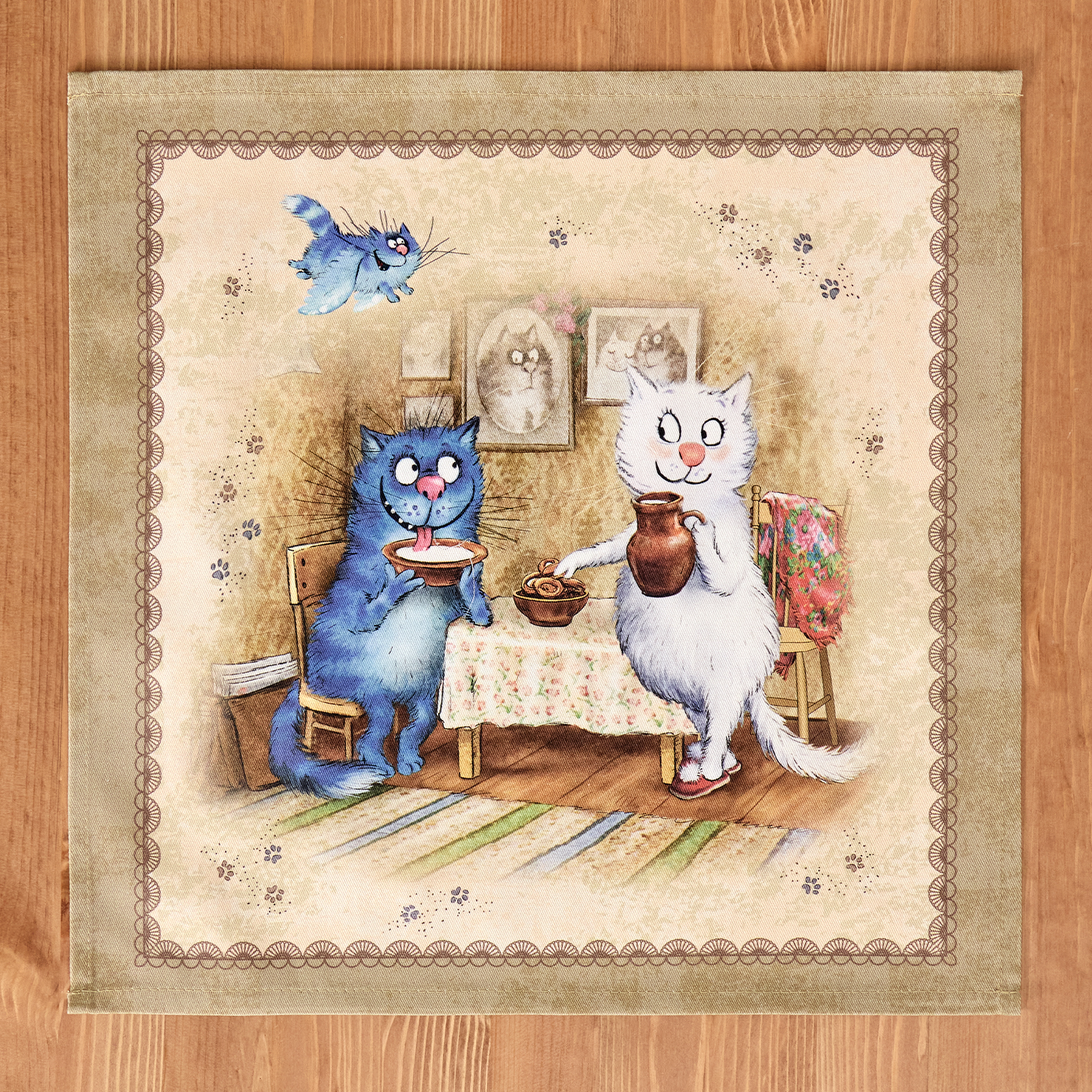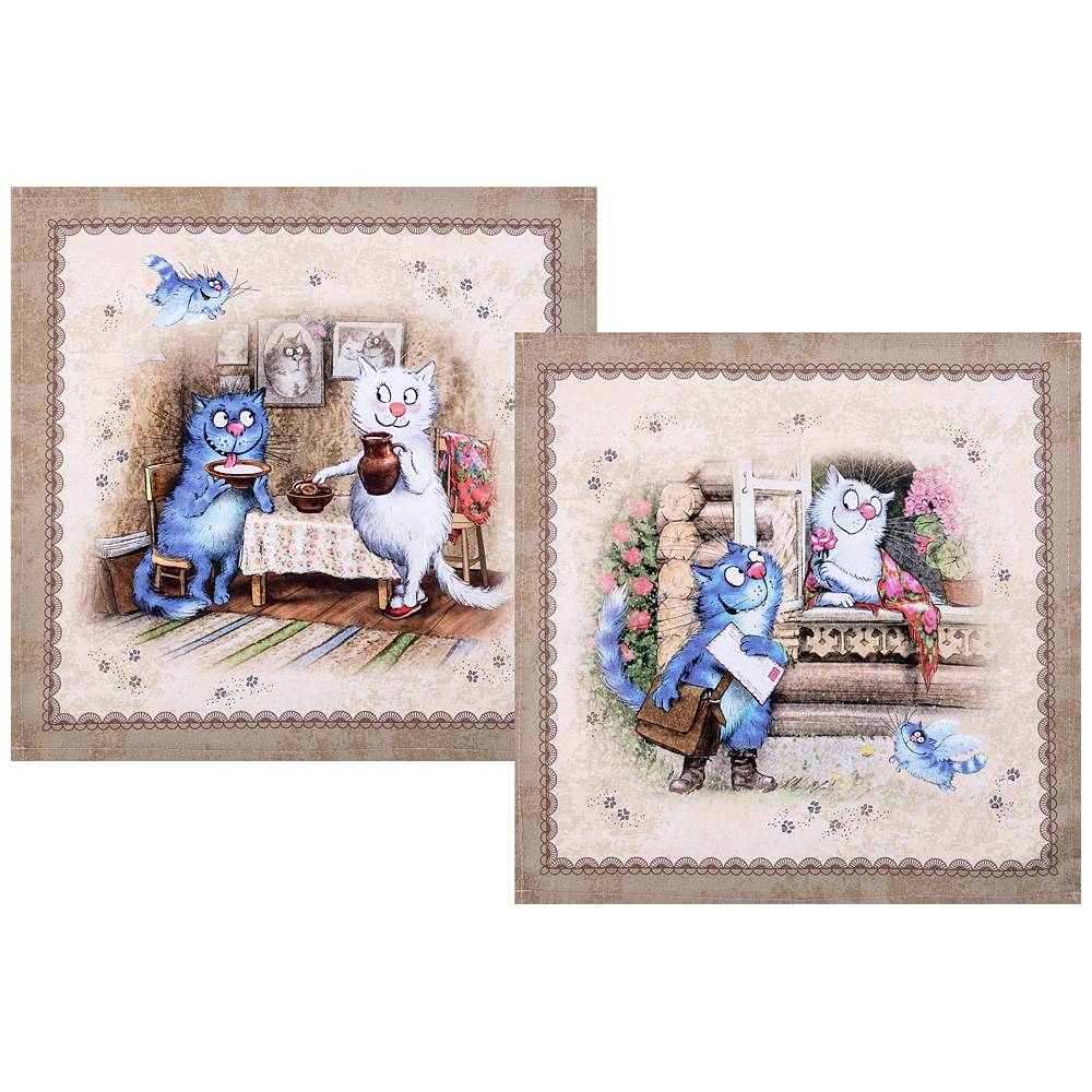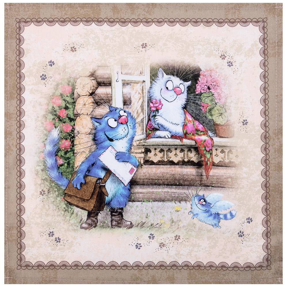 НАБОР САЛФЕТОК ИЗ 2-Х ШТ "СИНИЕ КОТЫ. ЛЮБОВЬ МОЯ",40Х40СМ, 100% ХЛОПОК,ТВИЛ, БЕЖ 850-719-81