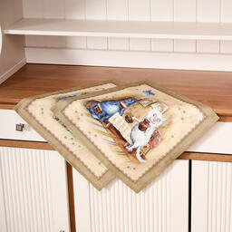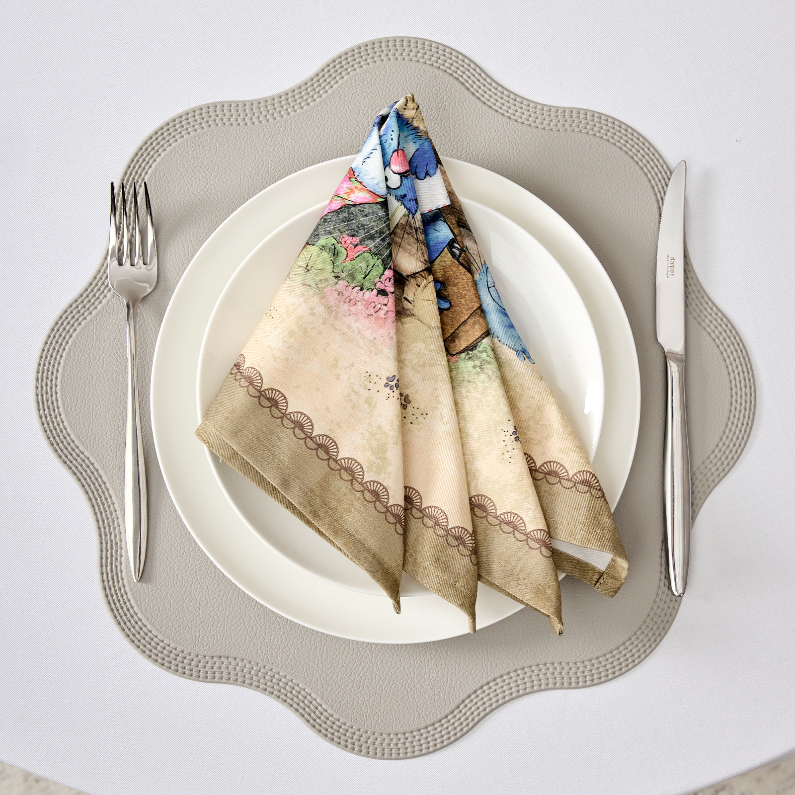 Особым направлением бренда «SANTALINO» является изготовление столового белья (скатерти, салфетки, дорожки (раннер), плейсметы, полотенца, фартуки) по эксклюзивным дизайнам наших художников, воплощённых в цифровой печати, на современном оборудовании. Для пошива изделий используются только натуральные материалы 100% хлопок, плотность ткани составляет 190 гр\м2, она имеет приятную структуру в мелкий рубчик и называется твил, отличается хорошей капиллярностью (впитываемость влаги), драпируемостью, износостойкостью, ткань проходит процесс каландрирования, что делает её более плотной и придаёт лёгкий атласный блеск, предотвращает образование так называемых «катышек» т.е. уменьшается пилингуемость ткани. Цифровая печать позволяет перенести на изделия не только всё богатство красок и оттенков, но и придать особую прочность крашению, ткань не теряет своей яркости даже после 100 стирок. Изделия легки и неприхотливы в уходе, стирать нужно при температуре 40С, гладить при температуре от 110-170С с отпариванием, но нельзя подвергать хлорному отбеливанию. Для удобства эксплуатации на ряд изделий, такие как фартуки, скатерти, дорожки может наноситься водогрязеотталкивающая пропитка, которая не влияет на внешний вид изделия, но позволяет избежать сильного загрязнения при использовании.