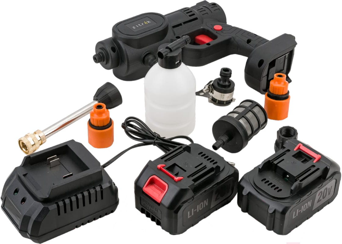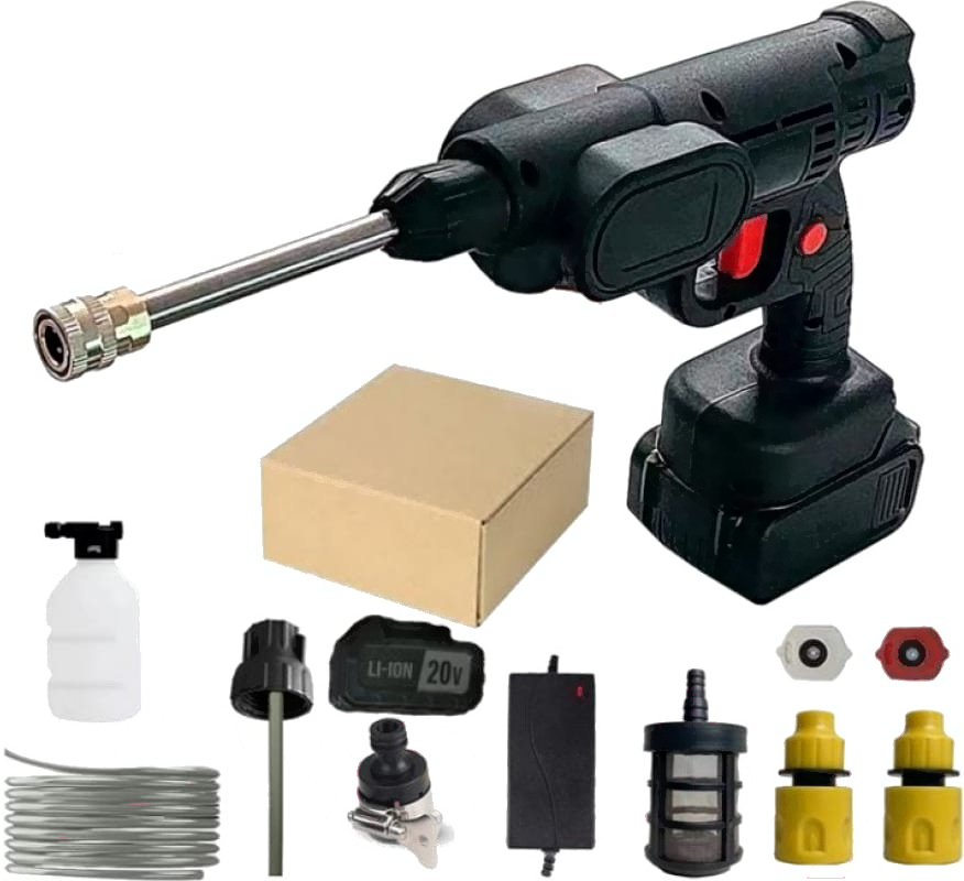 • Дополнительная комплектация шланг, аккумулятор (2 шт.), зарядное устройство, форсунка (2 шт.), соединительный элемент, руководство пользователя