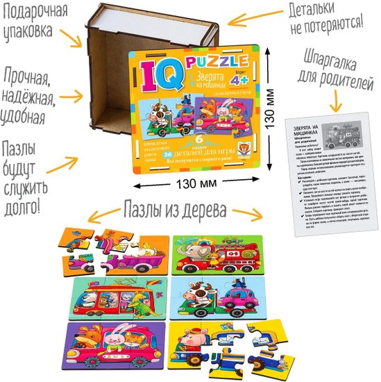 IQ деревянный. Зверята на машинках 4+ 9785811284597
