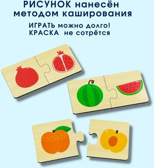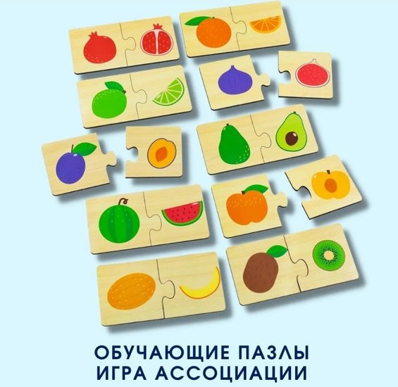 ✅ Развивающая и обучающая игра-ассоциации в виде парных пазлов «Фрукты» поможет ребенку в развитии у него абстрактного и логического мышления, научит классифицировать предметы, выделять общие признаки, а также разовьет мелкую моторику и расширит словарный запас малыша.✅ Игра «Фрукты» представляет собой набор из 10 деревянных карточек, поделенных на 2 части. Задача для ребенка — собрать пазл, подобрав половинки по их общим признакам.✅ Когда малыш только начинает играть в ассоциации, родители могут помочь ему: задать наводящие вопросы, подсказать и, конечно, похвалить за проявленную догадливость.✅ Игры-ассоциации помогут детям узнать новое об окружающем мире, расширить кругозор, потренировать логику и наблюдательность.✅ Развивающая и обучающая игра-ассоциации в виде парных пазлов «Фрукты» поможет ребенку в развитии у него абстрактного и логического мышления, научит классифицировать предметы, выделять общие признаки, а также разовьет мелкую моторику и расширит словарный запас малыша.✅ Игра «Фрукты» представляет собой набор из 10 деревянных карточек, поделенных на 2 части. Задача для ребенка — собрать пазл, подобрав половинки по их общим признакам.✅ Когда малыш только начинает играть в ассоциации, родители могут помочь ему: задать наводящие вопросы, подсказать и, конечно, похвалить за проявленную догадливость.✅ Игры-ассоциации помогут детям узнать новое об окружающем мире, расширить кругозор, потренировать логику и наблюдательность.