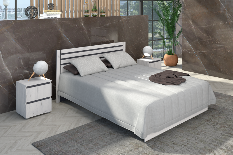 Кровать Лиана 1,4м Дуб крафт белый/Графит