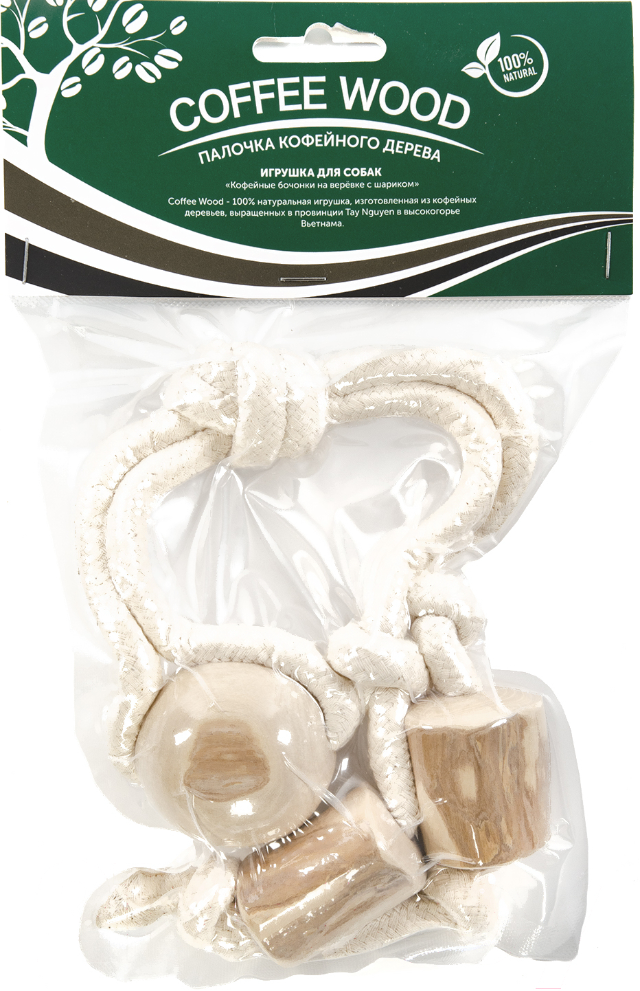 Игрушка для собак Coffee Wood Канатный грейфер с кофейными бочонками и шариком / TWINTUG/CW
