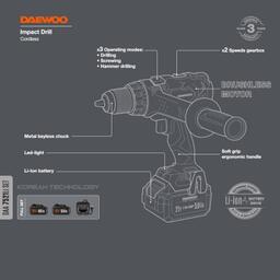 Дрель-шуруповерт ударная аккумуляторная DAEWOO DAA 7521Li SET