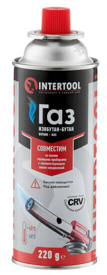 INTERTOOL GS-0022 представляет собой портативный и универсальный газовый баллон, который может использоваться с различными газовыми приборами, такими как туристические плитки, газовые горелки и т.д.