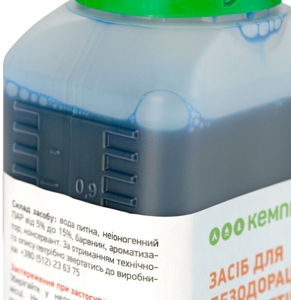 Для нижнего бака биотуалета нужно применять обеззараживающие средства для устранения не только неприятного запаха, но и гнилостных процессов. Приятный аромат очистительного вещества от бренда Кемпинг исключает любые риски и неудобства при использовании.