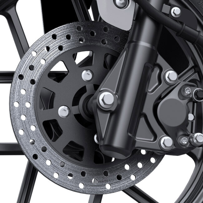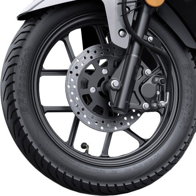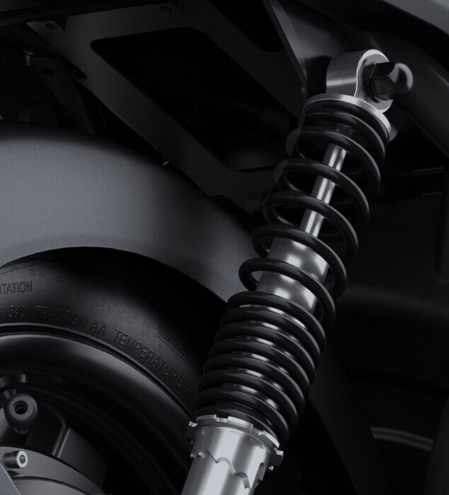 Для удобства пассажира производитель установил две подножки по каждую сторону. В момент стоянки электроскутер можно поставить на длинную боковую подножку. Раздельная тормозная система обезопасит водителя и пассажира в случае поломки заднего или переднего механизма.