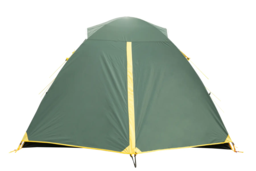 Имеет двухслойную конструкцию, состоящую из внешнего тента и внутренней палатки. Это обеспечивает дополнительную защиту от влаги и ветра, что делает палатку надежной в различных погодных условиях.