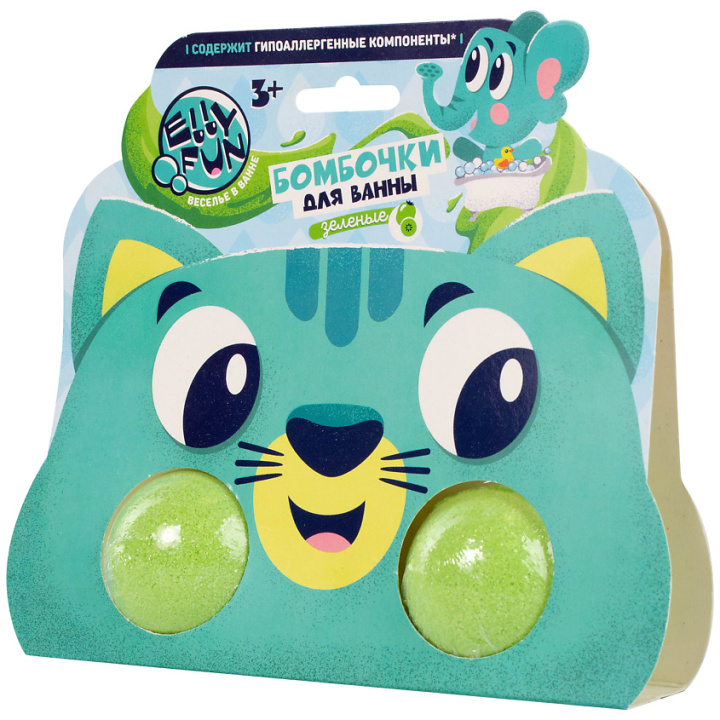 Бомбочки для ванны ELLYFUN "Зверюшки: Котенок обечайка. Тон Зеленый"