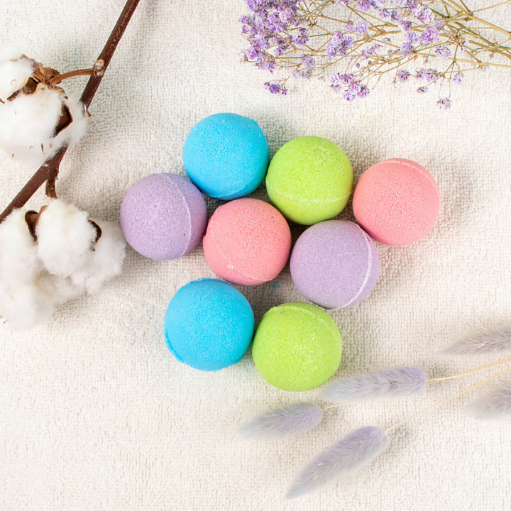 Бомбочки для ванны - это уникальная коллекция ярких и манящих ароматов. Добавьте шарики в воду во время принятия ванны, и они распространятся по воде создавая уникальный запах и визуальный эффект. Они содержат множество полезных и ароматических компонентов, которые помогут расслабиться, уменьшить стресс, усталость и боли в мышцах, а также улучшить настроение и кожу благодаря своим полезным свойствам и соды в составе.