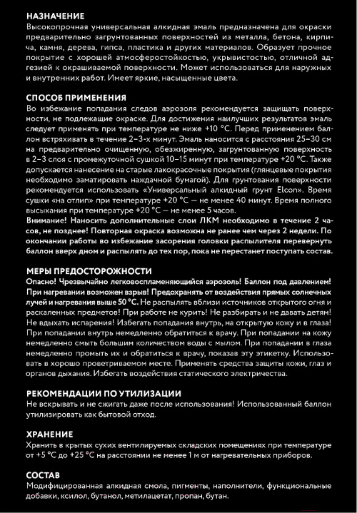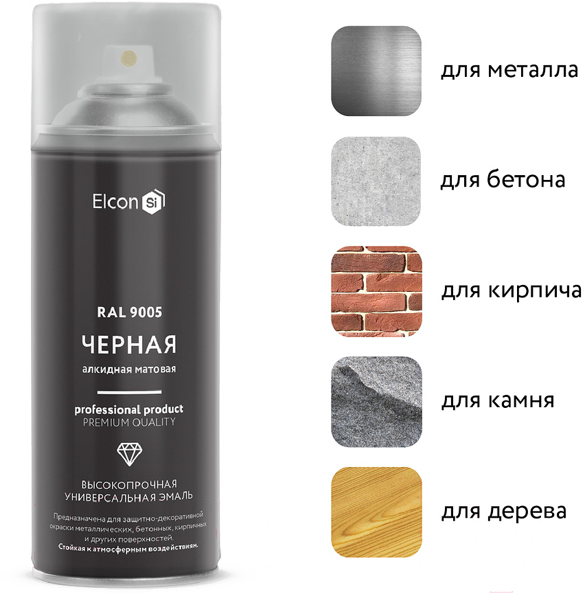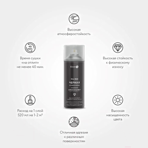 Эмаль Elcon Универсальная алкидная RAL 9005 (520мл, матовый черный)