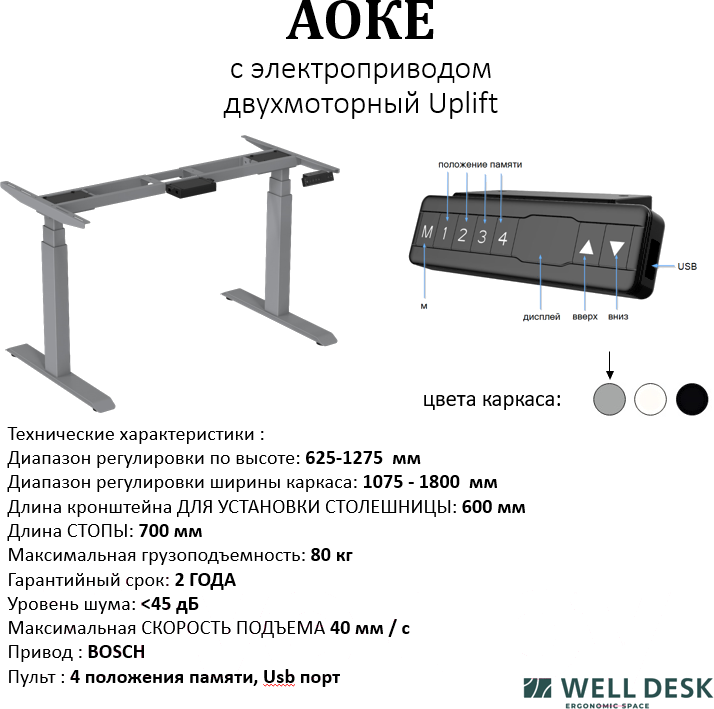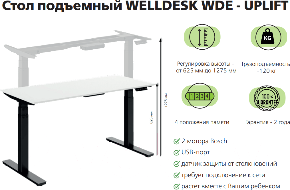 Письменный стол WellDesk WDЕ Uplift 139.5x80x2.8 (серый/ясень шимо)
