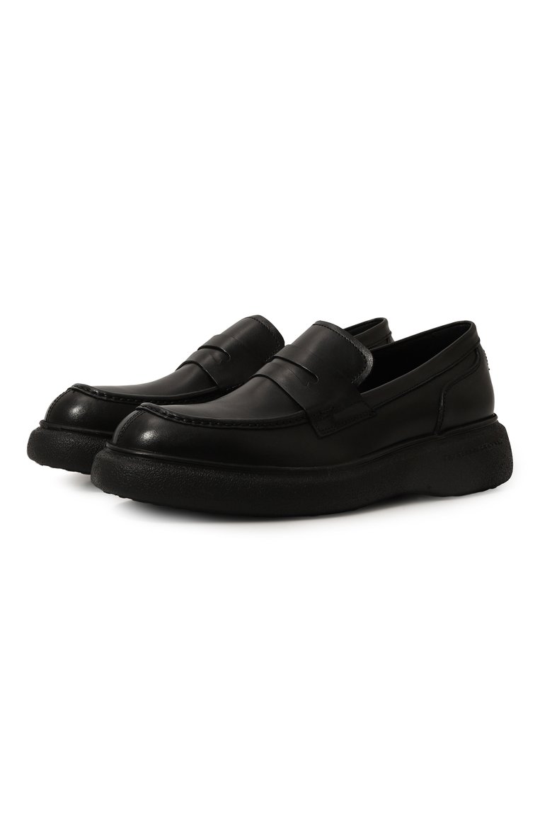 Пенни-лоферы на объемной выступающей подошве станут отличным завершением нестрогого образа, например, с брюками и рубашкой. Модель выполнили из кожи, традиционно украсив союзку перемычкой с прорезью.