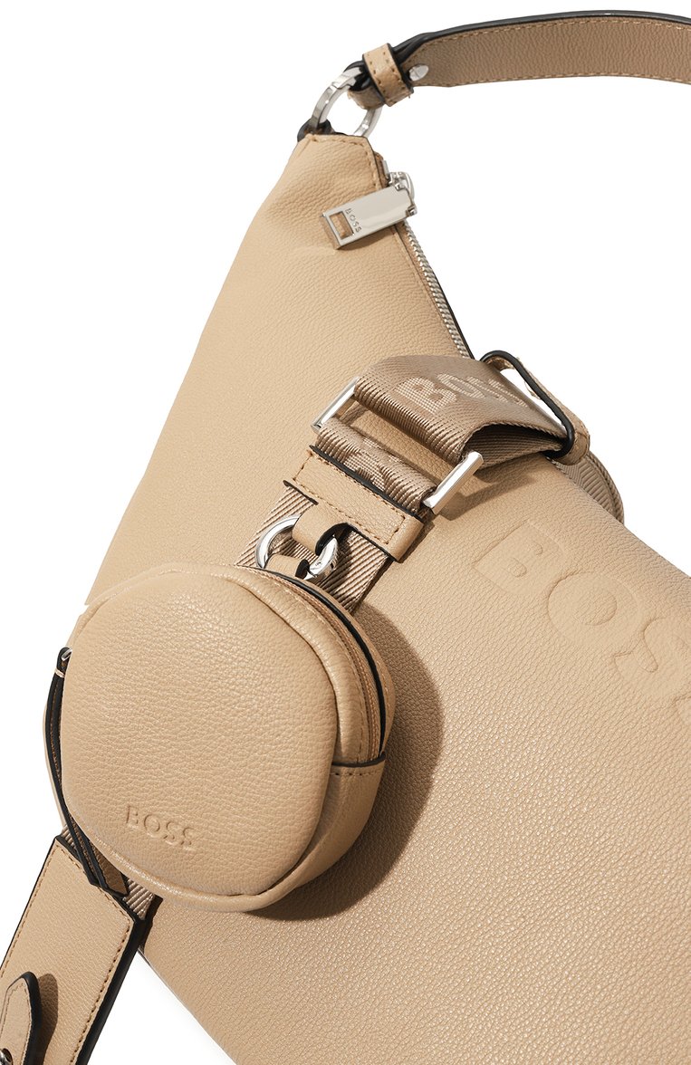 Сумку Addison с тисненым логотипом бренда выполнили из переработанного полиуретана, напоминающего зернистую кожу. Модель со съемной ручкой дополнили отстегивающимся плечевым ремнем с круглой монетницей. Внутри — два кармана.